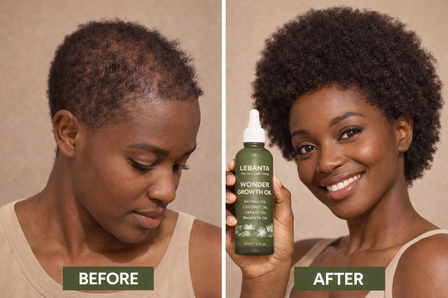 Before I discovered Lebanta Wonder Growth Oil, my hair was constantly breaking and my edges were almost gone from years of stress and tight hairstyles. I had tried so many oils that promised growth, but nothing truly worked. When I started using Lebanta, I noticed the difference within the first two weeks. My scalp felt healthier, less dry, and the itching completely stopped. By the fourth week, I could clearly see new hair growing around my edges and temples. My hair strands felt thicker, stronger, and much easier to manage. After two months of consistent use, my hair looks fuller and longer, and people keep asking what I changed. Lebanta didn’t just improve my hair — it restored my confidence. This oil is now a permanent part of my hair routine, and I honestly wish I had discovered it earlier